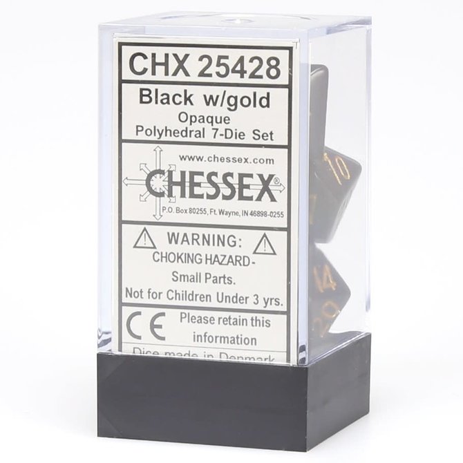 Chessex - CHX 7-Die Polyhedral Set - Black w/gold: Opaque