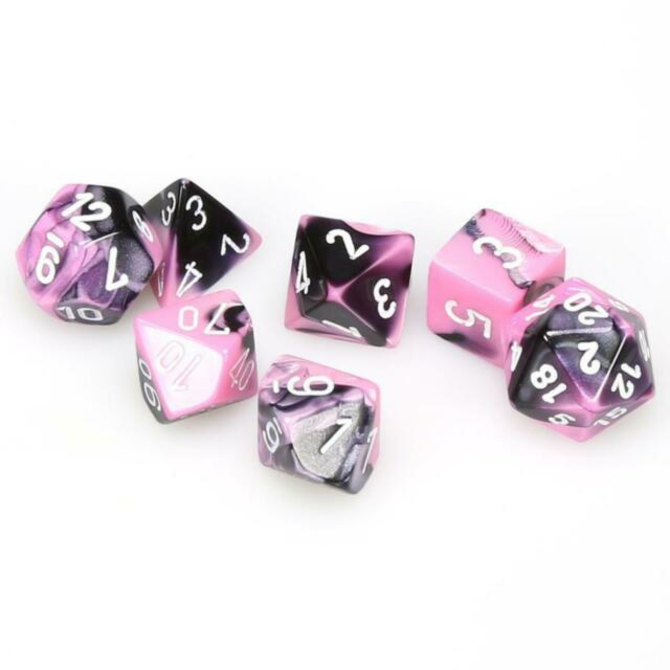 Chessex - CHX 7-Die Polyhedral Set Black-Pink w/white Gemini