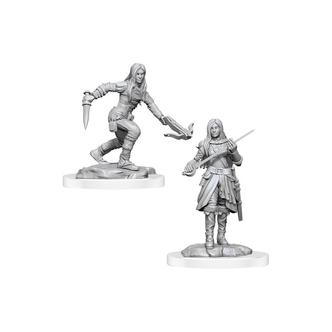 Female Half-Elf Rogue is a part of the Nolzur's Marvelous Unpainted Miniatures line for D&D by WizKids with the item number WZK90485.
