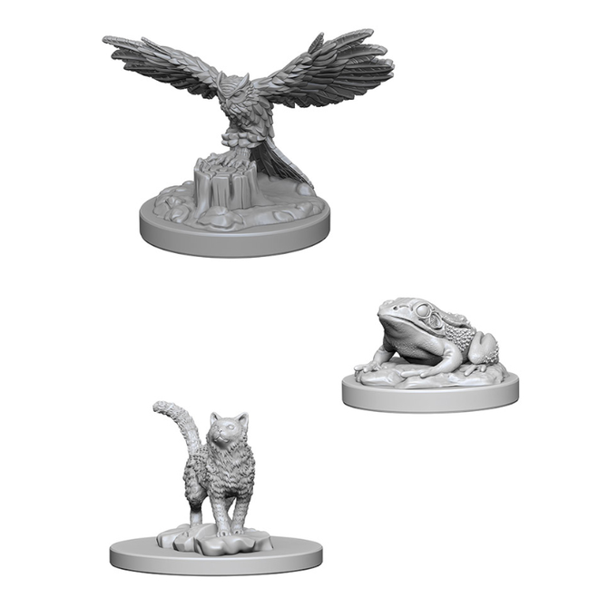 Familiars are from Wave 4 of the Deep Cuts line of roleplaying game miniatures from Wizkids with item number WZK73094.