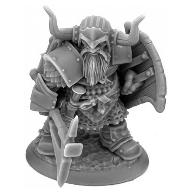 Dromn Ironsworn, Dwarf Warrior is part of the Dungeon Dwellers line of miniatures for TTRPGs by Reaper Miniatures with item number REM07133.