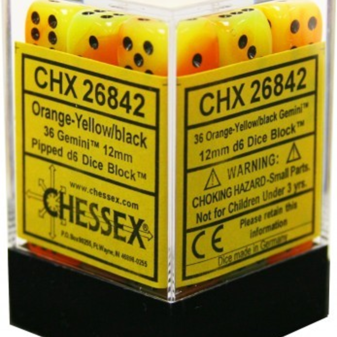 Chessex - CHX 36-die 12mm d6 Set Orange-Yellow w/black Gemini