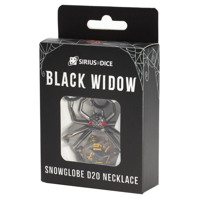 A Black Widow d20 Necklace from Sirius Dice with item number SDZ002201.