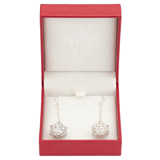 Dragon's Eye Silver w/ Pink Gems Dice Earrings from Hymgho Premium Gaming with item number HYOJ001.