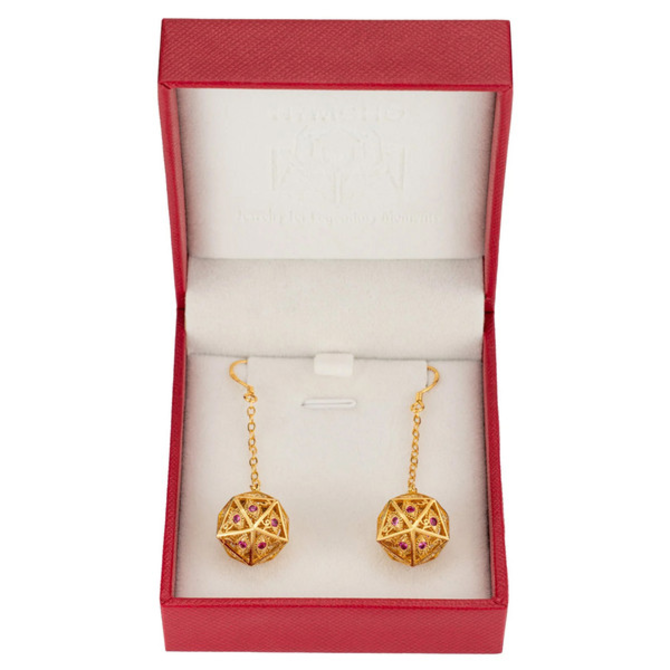 Dragon's Eye Gold w/ Ruby Red Gems Dice Earrings from Hymgho Premium Gaming with item number HYOJ002.