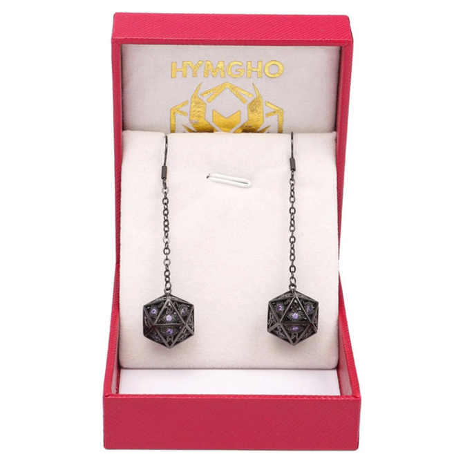 Dragon's Eye Gunmetal w/ Purple Gems Dice Earrings from Hymgho Premium Gaming with item number HYOJ003.