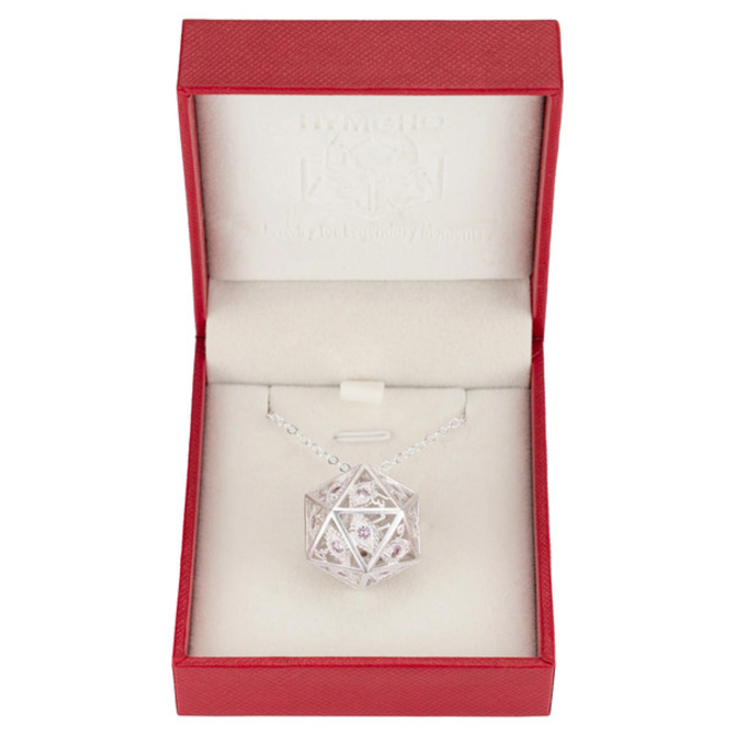 Dragon's Eye Silver w/ Pink Gems Dice Necklace from Hymgho Premium Gaming with item number HYOJ007.