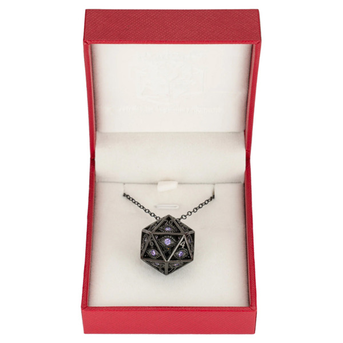 Dragon's Eye Gunmetal w/ Purple Gems Dice Necklace from Hymgho Premium Gaming with item number HYOJ009.