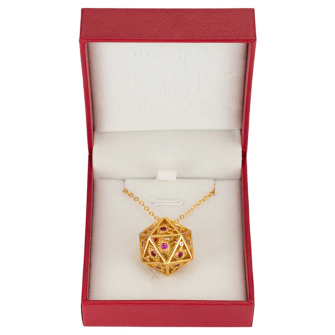Dragon's Eye Gold with Ruby Red Gems Dice Necklace from Hymgho Premium Gaming with item number HYOJ008.