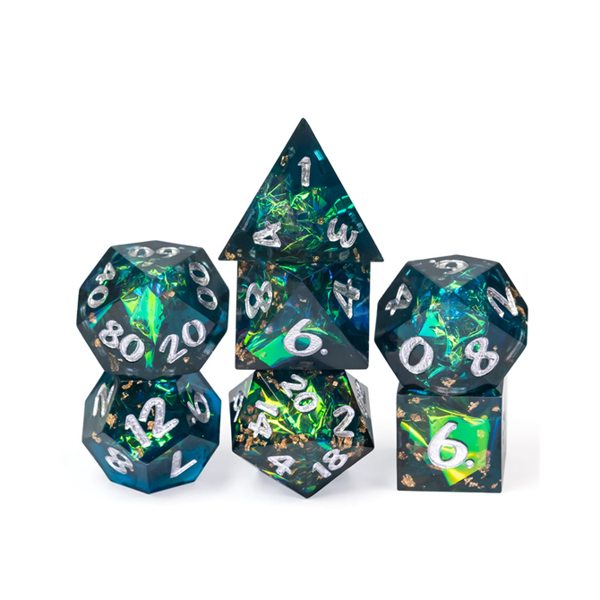 Seabed Treasure - Green & Purple is a Polyhedral 7-Die Set from Gameopolis Dice with item number RE-TR06.