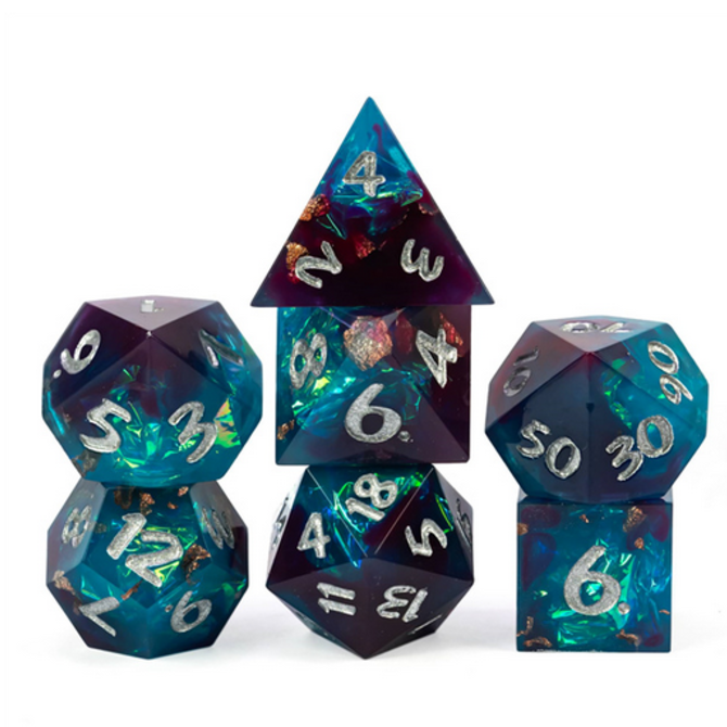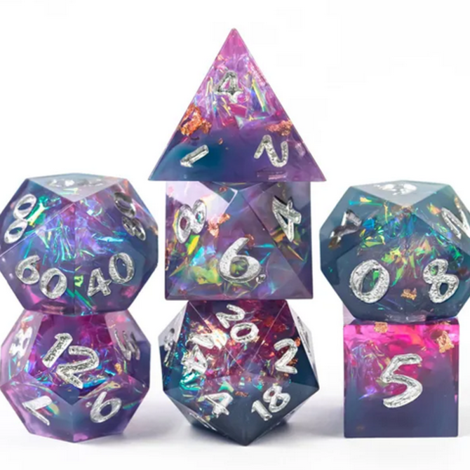 Sharp Handmade - Candy Glitter Paper - Purple & Blue is a Polyhedral 7-Die Set by Gameopolis Dice with the item number RE-HS08.