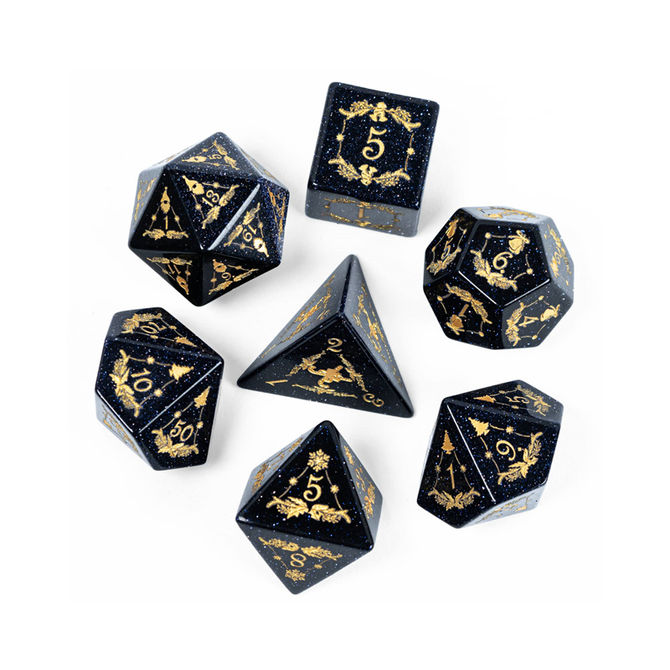 Blue Gold Semi-Precious Gemstone Dice - Holiday Design is a Polyhedral 7-Die Set. Gameopolis Dice - item number GE-UD46.