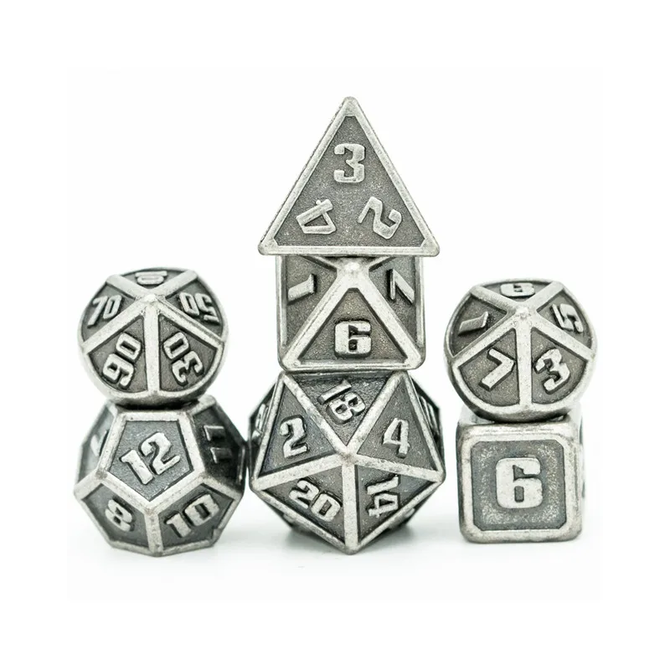 Silver Metal Mini Polyhedral 7-Die Set from Gameopolis Dice with item number ME-MN03.