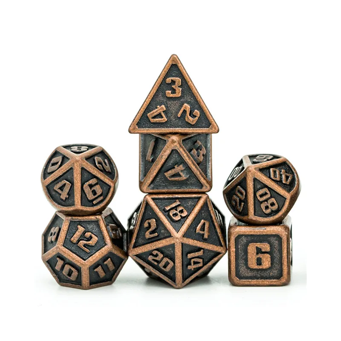 Stone Ancient Metal Dice - Bronze is a Polyhedral 7-Die Set by Gameopolis Dice with the item number ME-RO05.