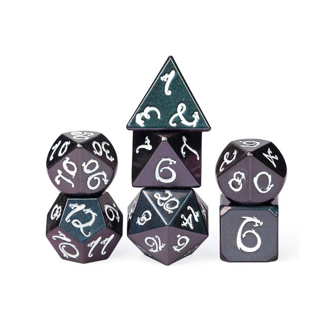 Light Changer Dragon Font - Purple & Blue is a Polyhedral 7-Die Set by Gameopolis Dice with the item number ME-DR70.