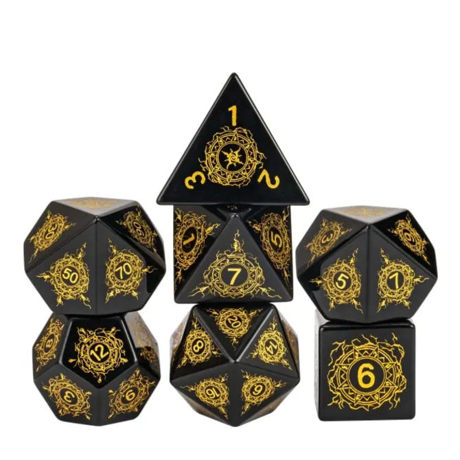Cutting Pattern Obsidian Gemstone Polyhedral 7-Die Set from Gameopolis Dice with item number GE-UD121.
