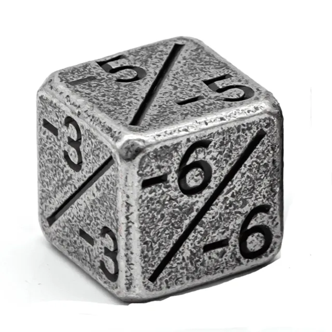 Silver Minus Counters D6 Metal Dice from Gameopolis Dice with item number ME-A04.
