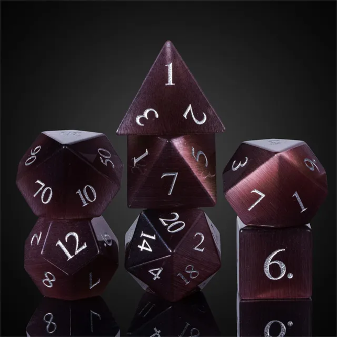 Purple Cat Eye Gemstone Polyhedral 7-Die Set with Black PU Leather Hexagon Box from Gameopolis Dice with item number GE-UD01.