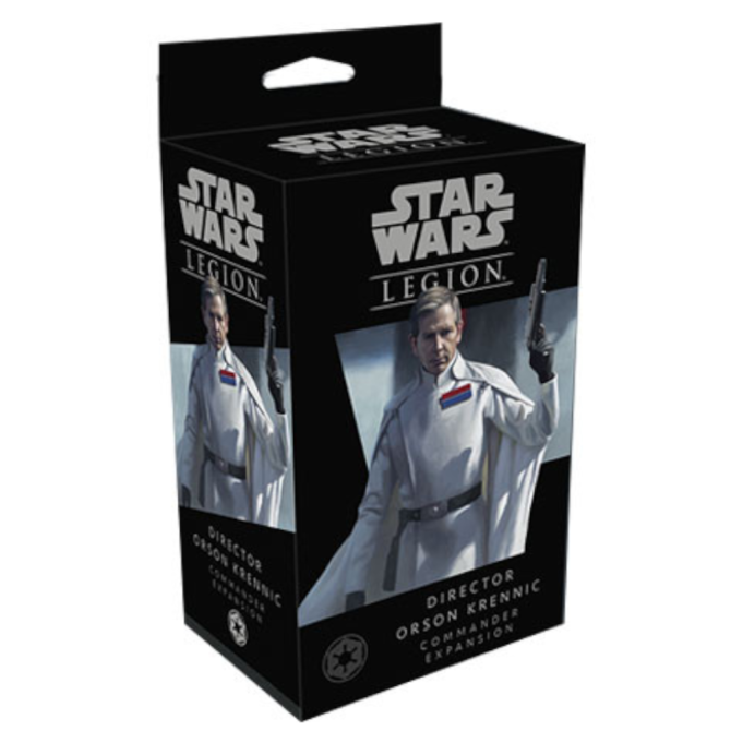 Director Orson Krennic is a part of the Galactic Empire faction for the miniatures game Star Wars: Legion by Atomic Mass Games with the item number SWL33.