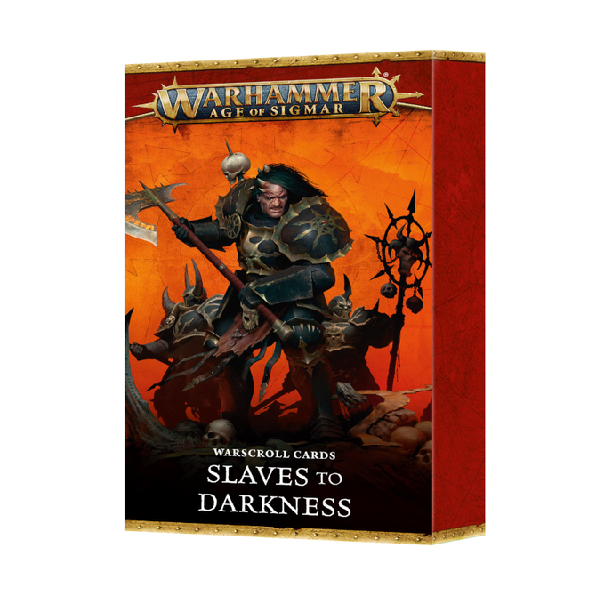 Slaves to Darkness Warscroll Cards are for the miniatures game Warhammer: Age of Sigmar by Games Workshop with item number 83-03.