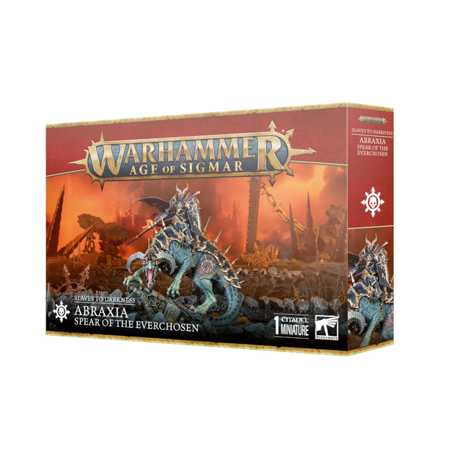 Abraxia Spear of the Everchosen is part of the Slaves to Darkness faction for the miniatures game Warhammer: Age of Sigmar by Games Workshop, item number 83-57.