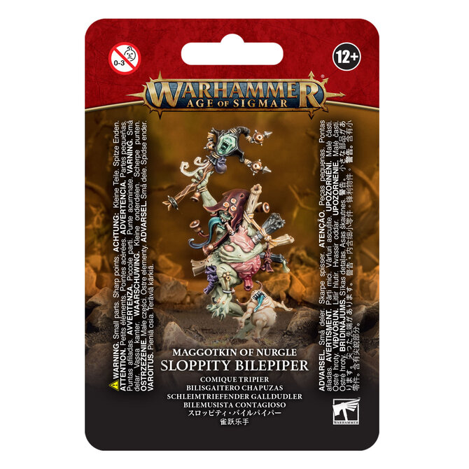 Sloppity Bilepiper is part of the Maggotkin of Nurgle faction for the miniatures game Warhammer: Age of Sigmar by Games Workshop with item number 97-72.