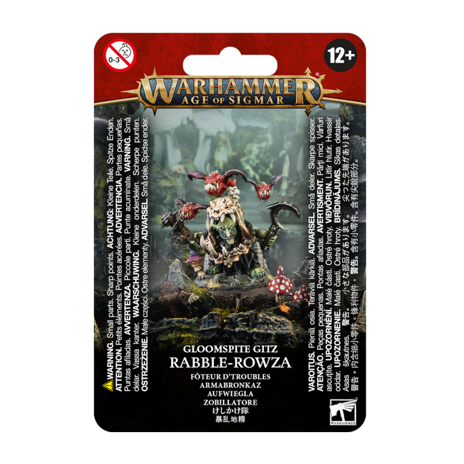 Rabble-Rowza is part of the Gloomspite Gitz faction for the miniatures game Warhammer: Age of Sigmar by Games Workshop with item number 89-84.