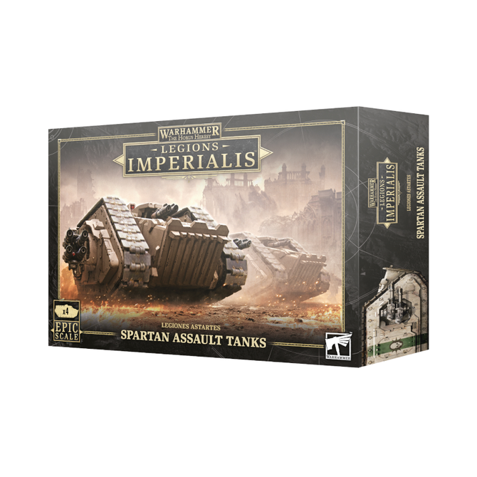 Spartan Assault Tanks are a part of the Legions Imperialis faction for the miniatures game Warhammer: The Horus Heresy by Games Workshop with item number 03-56.