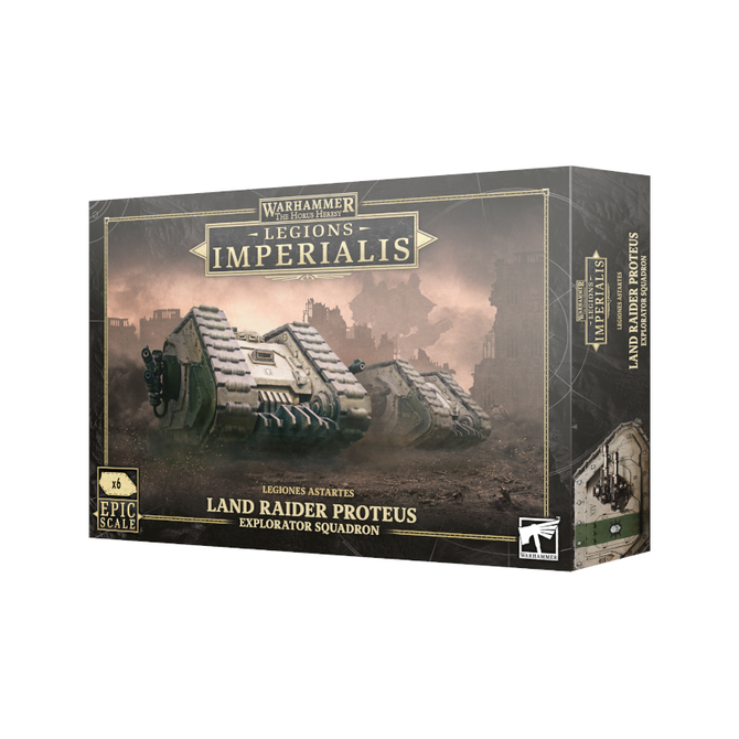 Land Raider Proteus Squadron is a part of the Legiones Astartes faction for the miniatures game Warhammer: The Horus Heresy by Games Workshop, item number 03-59