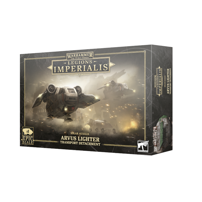 Arvus Lighter is from the Solar Auxilia faction for the miniatures game Warhammer: The Horus Heresy by Games Workshop with item number 03-60.
