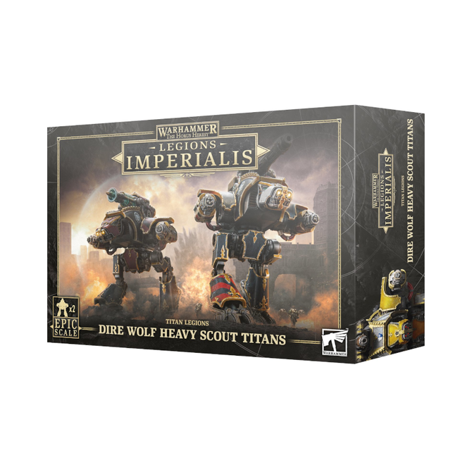 Dire Wolf Heavy Scout Titans are a part of the Titan Legions for the miniatures game Warhammer: The Horus Heresy by Games Workshop with item number 03-44.
