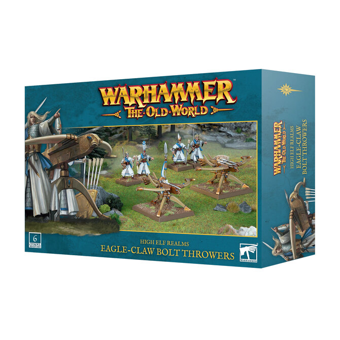 Eagle Claw Bolt Throwers are part of the High Elf Realms faction for the miniatures game Warhammer; The Old World by Games Workshop with item number 13-05.