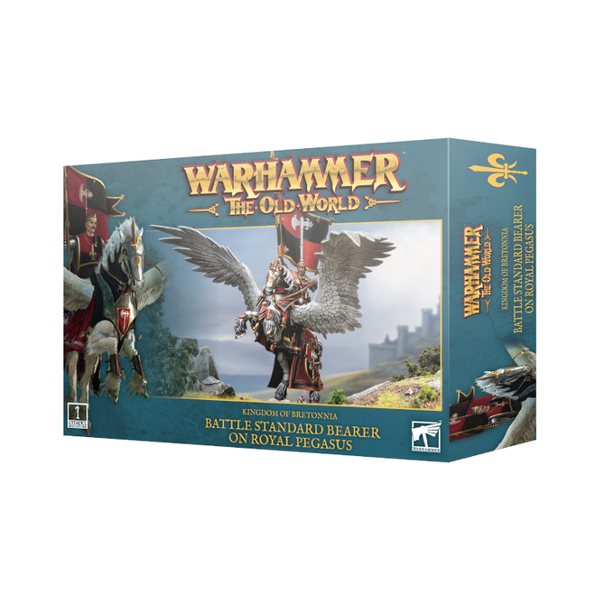Battle Standard Bearer on Royal Pegasus is part of the Kingdom of Bretonnia faction for the miniatures game Warhammer: The Old World by Games Workshop, 06-07.