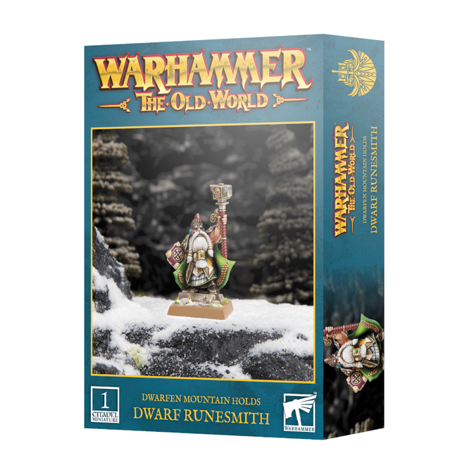 Dwarf Runesmith is part of the Dwarfen Mountain Holds faction for the miniatures game Warhammer: The Old World by Games Workshop with item number 10-06.