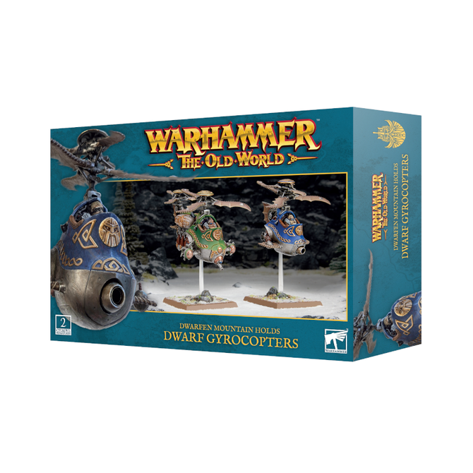Gyrocopters & Gyrobombers are part of the Dwarfen Mountain Holds for the miniatures game Warhammer: The Old World by Games Workshop with item number 10-13.