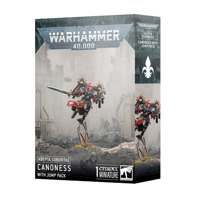 Canoness with Jump Pack is part of the Adepta Sororitas faction for the miniatures game Warhammer 40k by Games Workshop with item number 52-61.