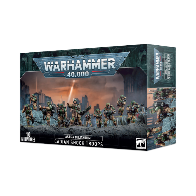 Cadian Shock Troops is a part of the Astra Militarum faction for the miniatures game Warhammer 40K by Games Workshop with the item number 47-33.