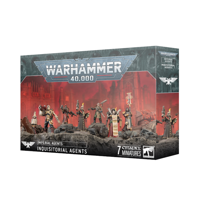 Inquisitorial Agents are part of the Imperial Agents faction for the miniatures game Warhammer 40K by Games Workshop with item number 68-13.