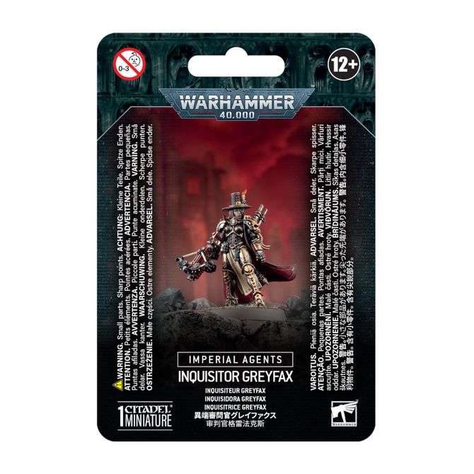 Inquisitor Greyfax is part of the Imperial Agents for the miniatures game Warhammer 40K by Games Workshop with item number 52-45.