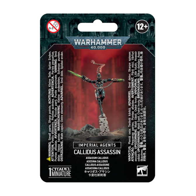 Callidus Assassin is part of the Imperial Agents for the miniatures game Warhammer 40K by Games Workshop with item number 52-12.