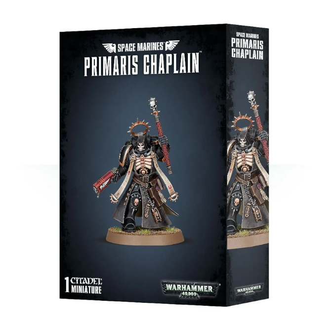 Primaris Chaplain is a part of the Space Marines faction for the miniatures game Warhammer 40K by Games Workshop with the item number 48-62.