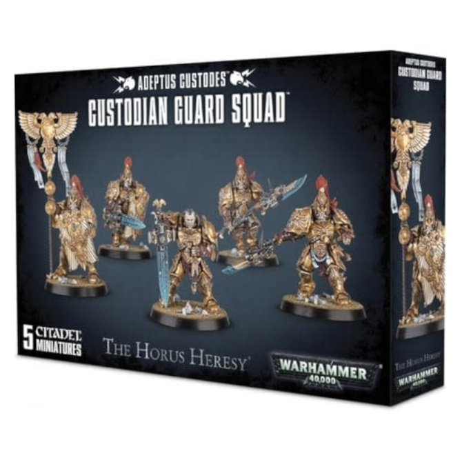 Custodian Guard Squad is a part of the Adeptus Custodes faction for the miniatures game Warhammer 40K by Games Workshop with item number 01-07.