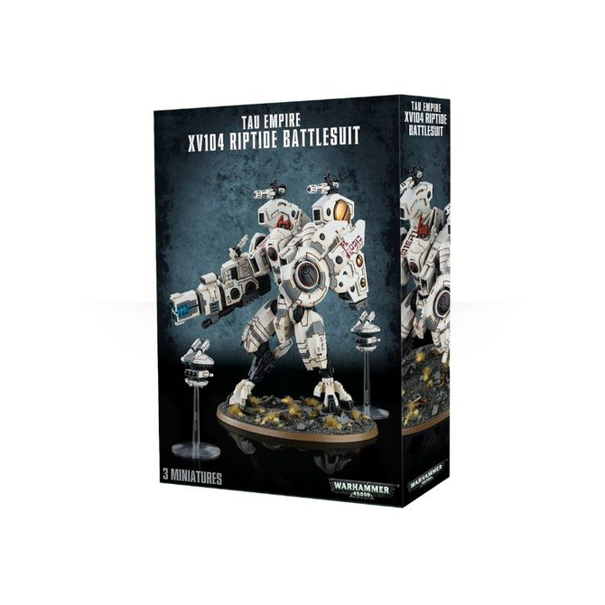XV104 Riptide Battlesuit is a part of the Tau Empire faction for the miniatures game Warhammer 40K by Games Workshop with item number 56-13.