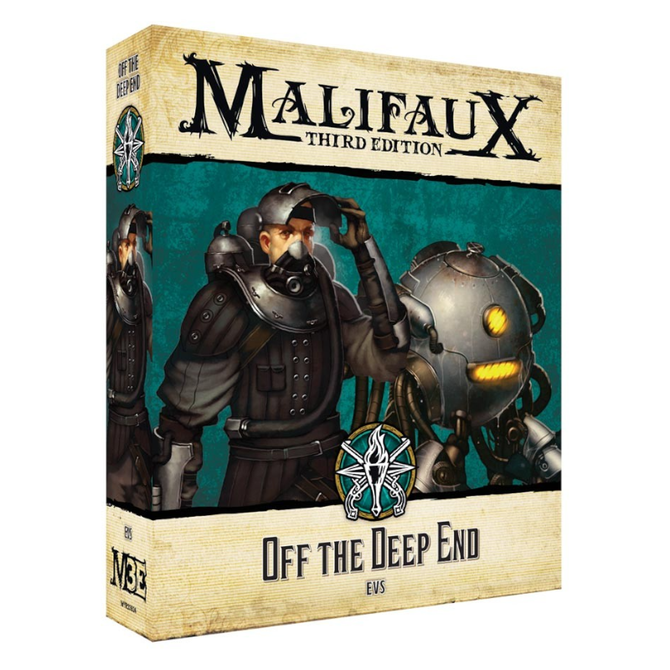 Off the Deep End is a part of the Explorer's Society faction for the miniatures game Malifaux 3E by Wyrd Games with the item number WYR23824.