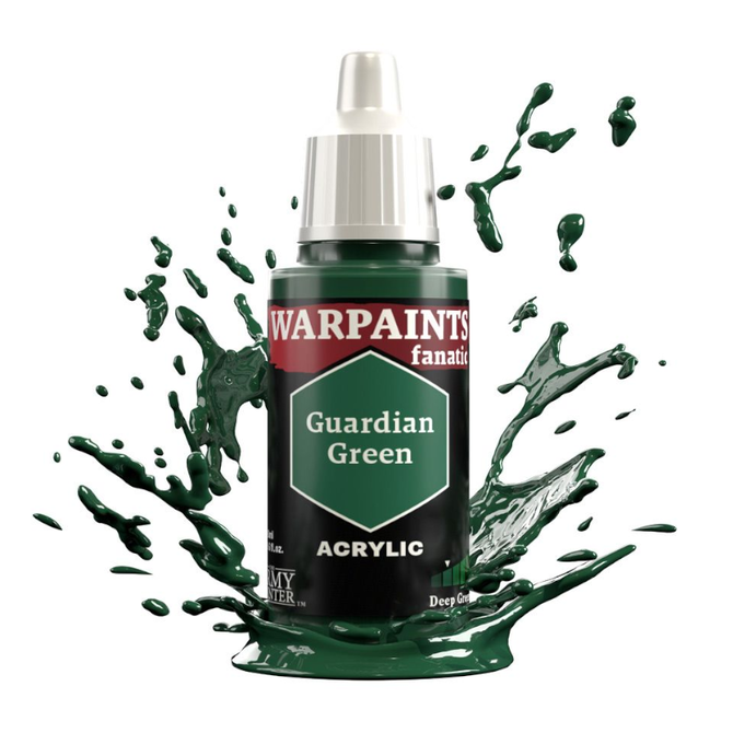 Guardian Green is a part of the Warpaints Fanatic Paint line from The Army Painter with item number AMYWP3050.