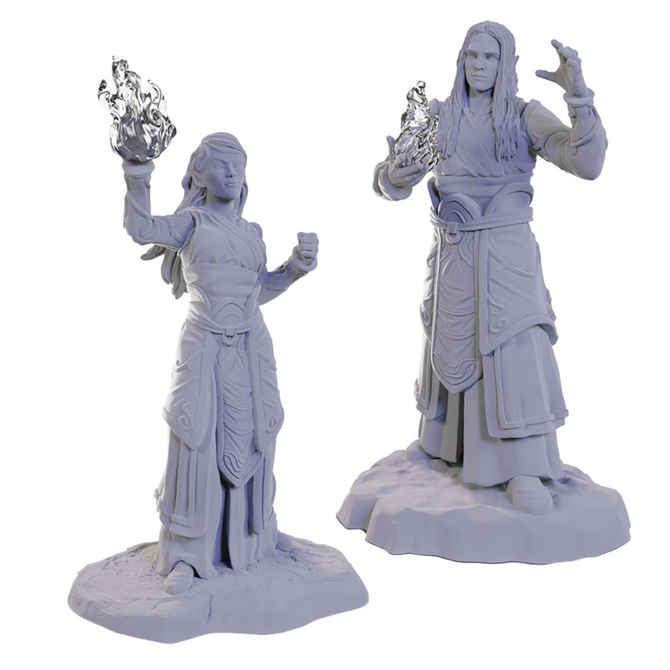 Elf Wizards are part of Wave 22 of Nolzur's Marvelous Unpainted Miniatures by Wizkids for the roleplaying game Dungeons & Dragons with item number WZK90672.