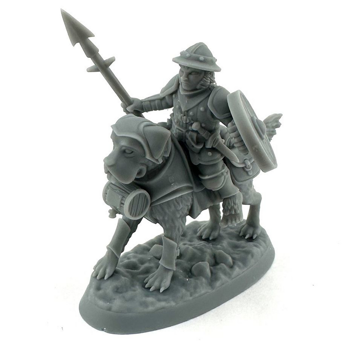 Halfling on Dog (Male) is a Dungeon Dweller miniature for table top roleplaying games from Reaper Miniatures with item number REM07114.
